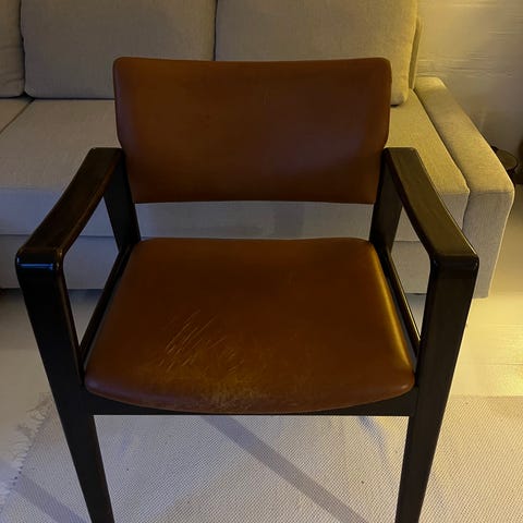 Lænestol, træ, Arne wahl Iversen, 1 stk brugt lænestol designet af Arne wahl Iversen model 16 og formgivet midt 1950'erne, produceret hos Hans Hansen & Søn, ben i eg og negle i teak, stolen har brugsspor, men generelt i fin stand. B:69cm. D:76cm. H:90cm. SH:39cm. Stolen er ikke ny og sælges derfor som brugt, derfor kan der forekomme ridser, slid og skrammer. Prisen er kun 2350kr.