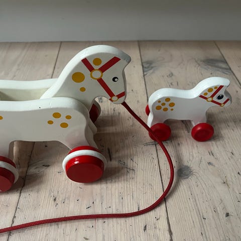 Hest, Gammel Brio hest - den er ca 18 cm lang og 18 cm høj.
