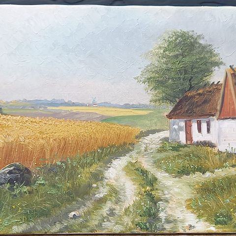 Oliemaleri, Børge Ruud, motiv: Landskab, stil: Andet, b: 126,5 h: 46, Landskab ved vand motiv af Børge Ruud ( 1925 - 2007 ) Undervist i Paris af Lëon Richey...