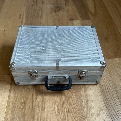 Bundsolid værktøjskuffert i aluminium med indlæg til diverse ting.