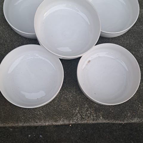 Porcelæn, Salatskålen og saltkar, 6 salatskåle og 4 saltkar i hvidt porcelæn . Brugt men i god stand . Kan sendes forsikret med dao til pakkeshop 48kr