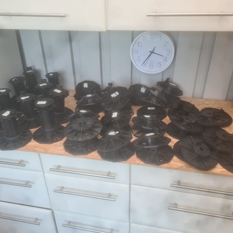 7 stk. fødder, højde justerbar fra 3,5-6,5 cm, maks. belastning 220kg/stk.