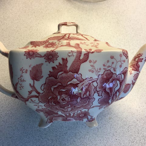 Fajance, Te-og kaffekande, Johnson bros., "Greendawn". Takande,h: total 13 cm.lille afslag på låg ( se billede) kaffekande,h : 18 cm,fejlfri. Kan sendes.prisen pr. Stk.