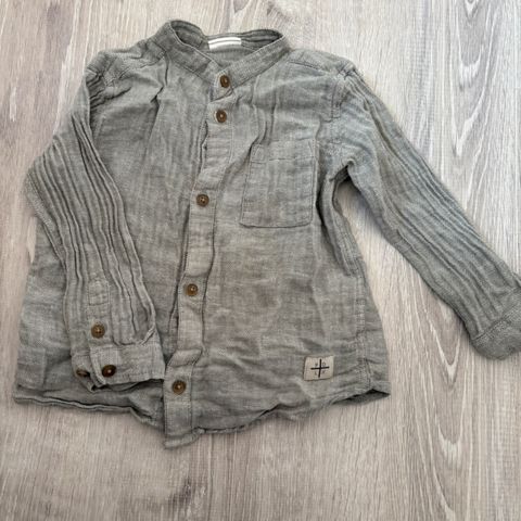 ernet skjorte i grå og røde nuancer fra POMPdeLUX i str. 146/152 med smarte detaljer på bryst, albuer og ryg (se fotos).