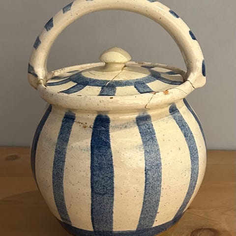 Keramik, Barselspotte, Meget gammel barselspotte, ca 1880, lidt afskalninger i glasur på kanten, stempel med Danmark i bunden