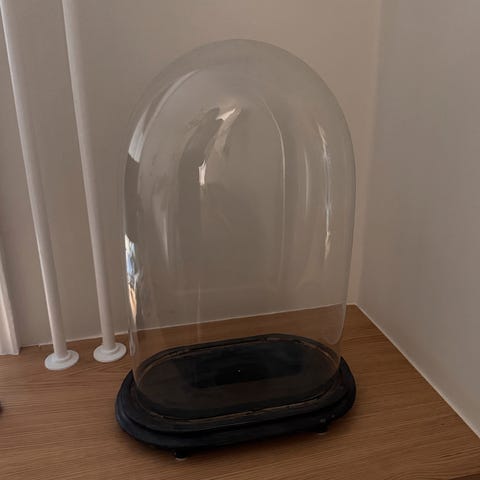Glaskuppel / glasglobe, Glaskuppel / glasklokke / glasglobe med sort træbase.