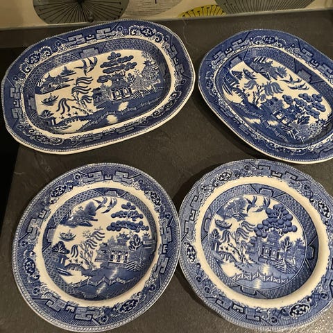 Porcelæn, Tallerkener, White Dolphins by WEDGWOOD, Tallerkener fra 1980'erne Ø ca 4x 23 og 5x 27 cm