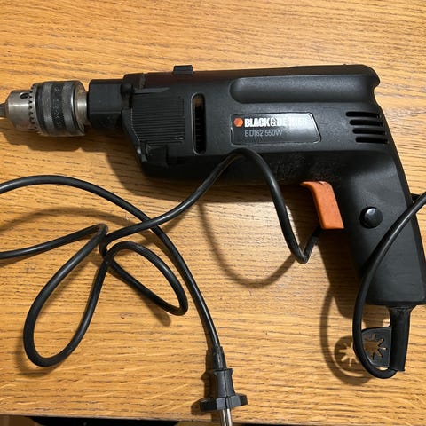 Boremaskine, Black & Decker, Boremaskine fra Black & Decker , meget gammel model ( liebhavermodel ? ) 340 Watt, omdr. 900/2400, 2 gear , Borepatron 10 mm . Farve orange. Virker perfekt . Giv et bud . Sælger mod kontant eller Mobile Pay .