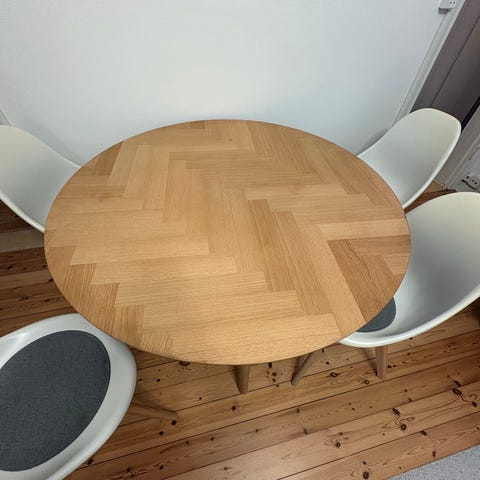 Købt i 2022. Fungerer upåklageligt, sælges udelukkende pga ønsket om andet bord og stole.