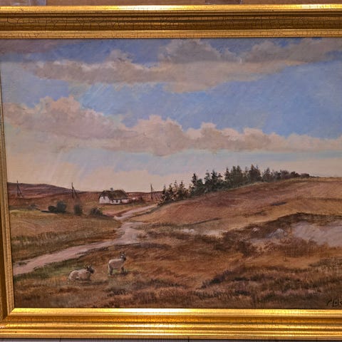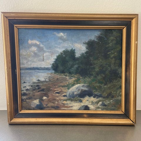 Oliemaleri, Ole Due, motiv: Landskab, stil: Impressionisme, b: 59 h: 46, Due, Ole Wolhardt Stampe, 1875-1925