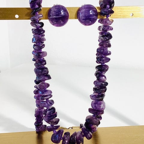 Smykkesæt med lilla ametyster - halvædelsten,