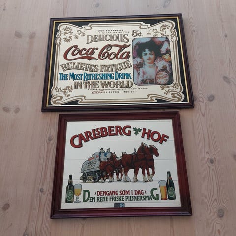 Anden type spejl, b: 35 h: 25, Originalt, Retro, vintage, spejl med Coca Cola motiv.