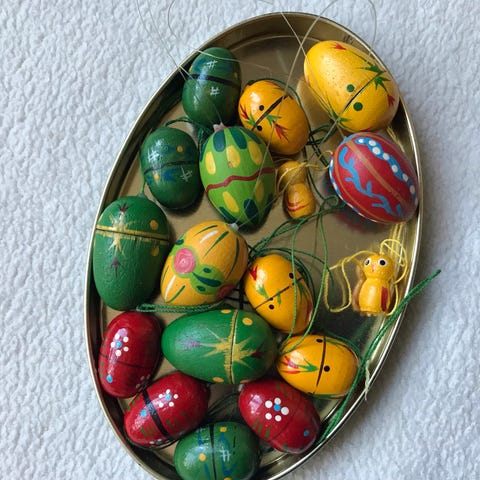 17 ældre træpåskeæg, 17 ældre klassiske træpåskeæg til ophæng på gren træ