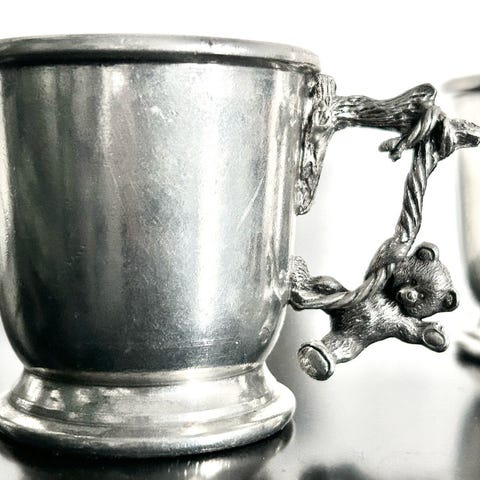 Tin, Krus, Just Andersen tinkrus . Mere end 55 år, men meget velholdt. Stået til pynt eller brugt til blomster. Har nu stået mange år i et skab. Måler : højde 14 cm, diameter 7 cm.