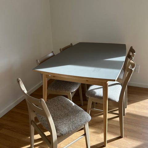 Bordet sælges uden stole og tillægsplader.