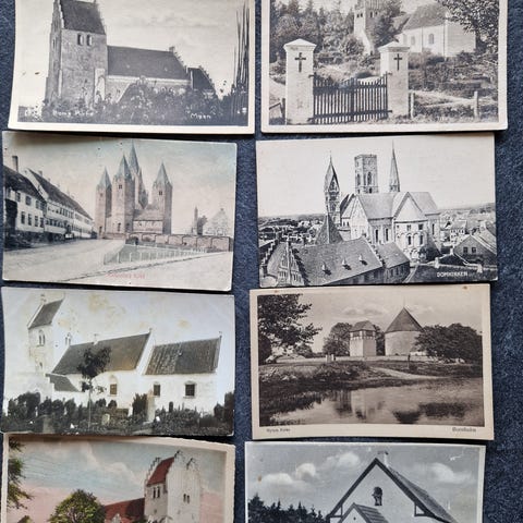 Postkort, Specielle danske seværdige kirker. Postkort, 3 x vintage postkort, med specielle kirker som motiv.