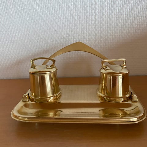 Blækhus , 2 tårnet Pletsølv, 150 år gl., Eneret blækhus med originalt blækglas. 2 tårne pletsølv.