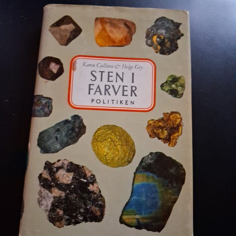 Sten i farver, allisen, Karen & Helge Gry, emne: hobby og sport, Håndbog med farvefotos og beskrivelser af de sten, der kan findes i Danmark. Politiken NATUR. 159 sider.