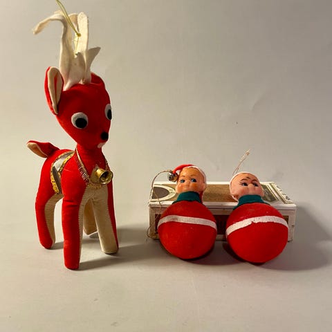 Nisser med magnet - den ene nisse mangler magnet - kan evt bruges til at sidde op af noget i en reol, i en kop, på toppen af en billedramme, eller noget helt andet.