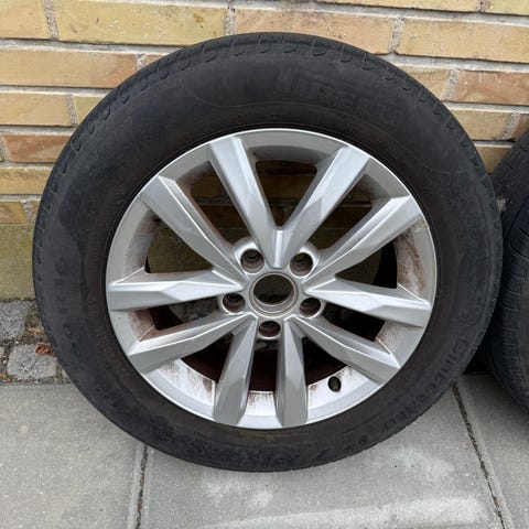 Alufælge, 16", VW, 205 / 55 / R16, ET 50, sommerdæk, Kleber, 75% mønster, fælge med dæk, 4 originale alufælge med dæk, fælgdata 6,5Jx16H2 ET50, dæk har kørt ca.15.000km, fra april til november sidste år 2024, afballancerede, Kleber Dynaxer HP4 DT1. Der følger 4 sikkerhedsbolte og en top med. Hjulene har siddet på en Golf V Variant, passer også til Skoda og Seat oa.