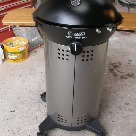 Gasgrill, Cadac Gas-o-Grill, Ny ubrugt. Transportabel. I kraftigt støbejern samlet vægt 12kg. Højde 90cm plade diameter 38 cm pladens vægt er alene 9,5kg med en tykkelse på 2,5cm støbejern (swipe 2 billeder). Prisen er fast