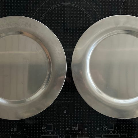 Rustfrit stål, Bordfad, Herstal, Flot bordfad med 2 fade ( stål og glas )