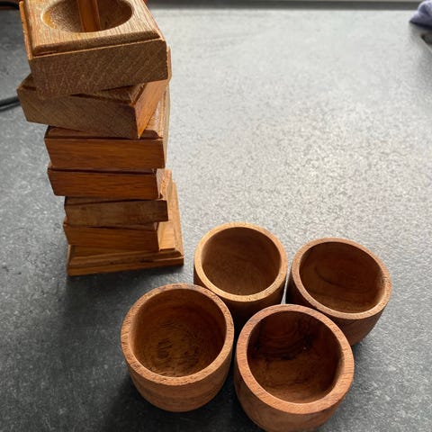 4 æggebæger, Træ bæger der kan stables