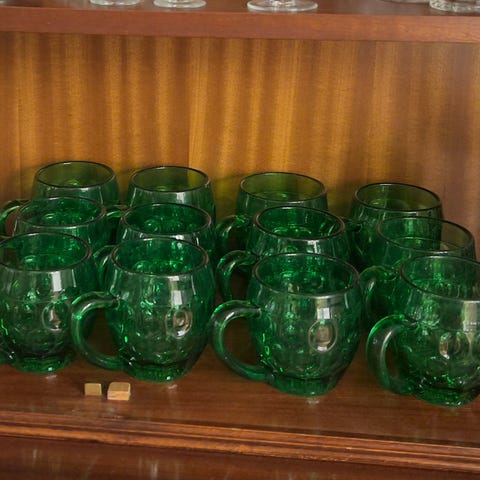 Grønt glas. Skulle næsten tro de var nye, dog med luftbobler og lidt minimale brugsspor, kan lokke ikke undgås.
