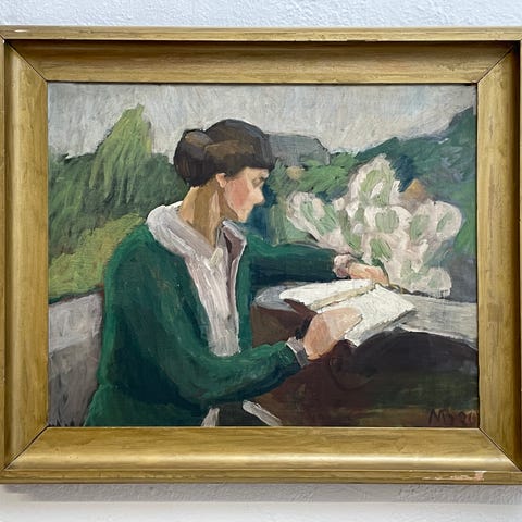 Oliemaleri, Majsa bredsdorff, motiv: Landskab, stil: Modernisme, b: 43,5 h: 34, Kunstmaler Majsa Bredsdorff (1887-1964)