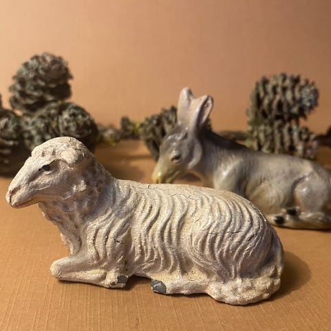 Gl svagtseende får lam, Gl. Retro svagtseende lam Får I plastik, 5 cm høj