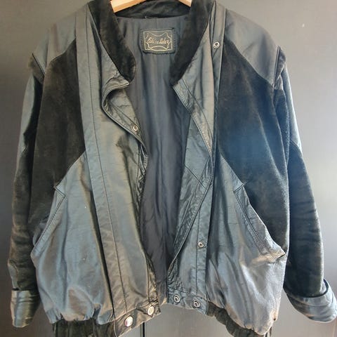 Læderjakke, str. 40, Vintage, Sort, Læder, God men brugt