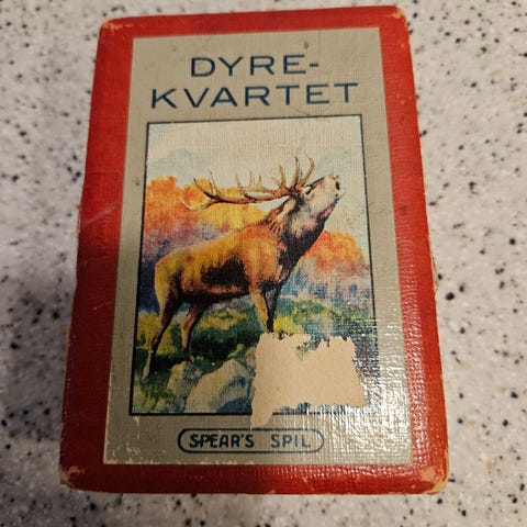 DYR kvartet spillekort med 32 forskellige kort med dyr fra hele verden. Spillet er fra 1981, intakt og fremstår i meget pæn stand. Spilleregler på dansk og original plastæske medfølger.