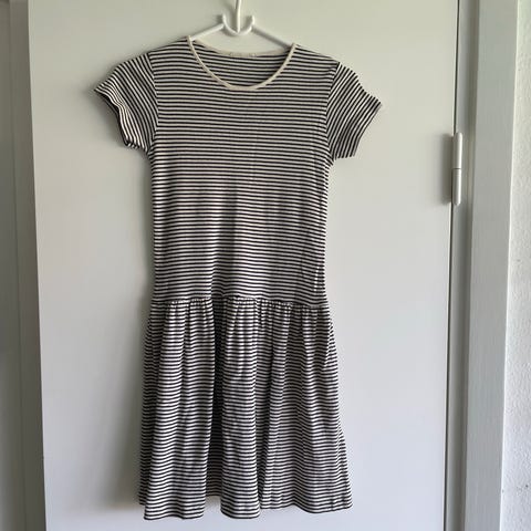 Kjole, Sommerkjole, Mads Nørgaard, str. 128, Super sød sommerkjole i smukke farver. Blomstermønster og korte ærmer. Cirka knælang, med markering omkring taljen. Lynlås i nakken sikrer, at den er nem at få på og af.