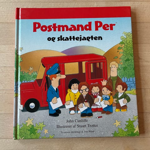 Postmand Per og skattejagten, John Cunliffe, Pæn hardback-indbundet børnebilledbog, Postmand Per Klubben , 1998, 32 sider.