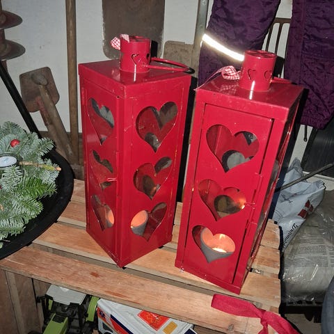 Lanterner, 2 stk. Flotte orkanlanterner, enten til haven eller til at spice campingture lidt op. De er brugt få gange, så der er massere af væge endnu.