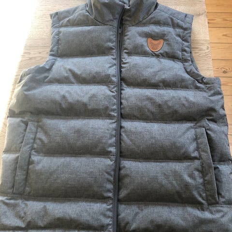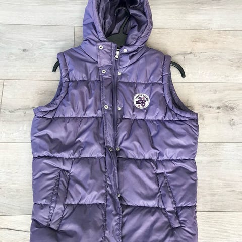 Vest, Vest med polyester fyld, Pooopiano, str. 128, Næsten ubrugt vest med polyester fyld og hætte. Brugt få gange og fejler absolut intet. røgfri hjem ingen husdyr normal i størrelsen farven er sort med sølvlås