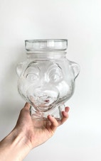 Glas, Opbevaringsglas lågkrukke , France, En sød bjørnekrukke i glas med tætsluttende låg til opbevaring af lækre ting i køkkenet. Mærket France på både låg og i bunden af glasset. Standen er som ny.