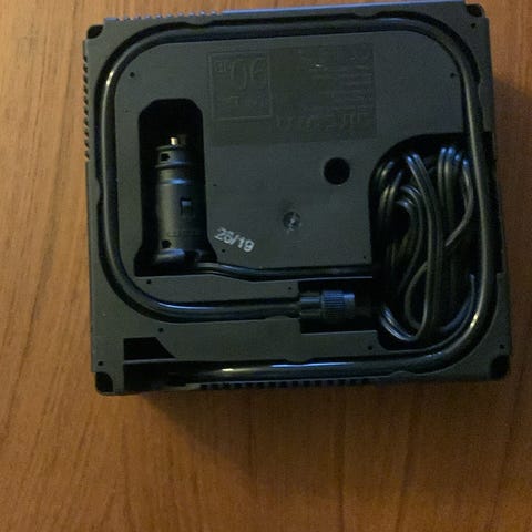 Andet biltilbehør, El-dækpumpe. 12 volt via usb-stik. Nøjagtig indstilling af psi. Yderst handy. Tilbehør til oppumpning af bolde, luftmadrasser o.s.v. Aldrig taget i brug.