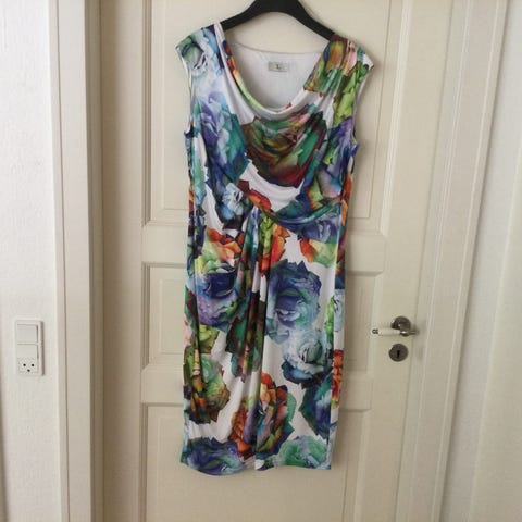 Sommerkjole, Tia , str. M, Rosa hvid, Viscose, Næsten som ny, Rigtig flot kjole i glade farver. Pink nuancer med hvidt.