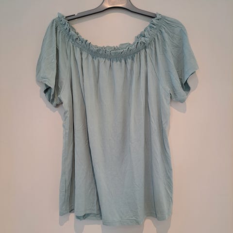 Kakigrøn højhalset bluse med lange ærmer, i halvtyndt viskosejersey.