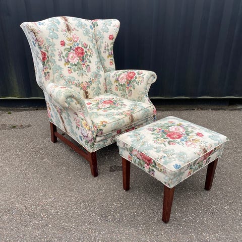 Øreklapstol, velour, Antik