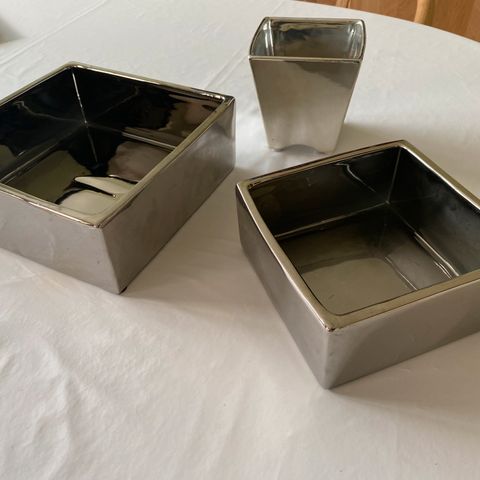 Urtepotte , Sølvlook, Ny oval urtepotte i sølvlook. Mål l. 20xB12,5 x