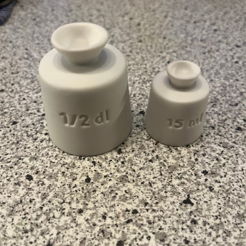 Plastik, Æggebæger, Alessi, Alessi design æggebægere med skeer og indbygget saltbøsse i kasketten. Som nye.
