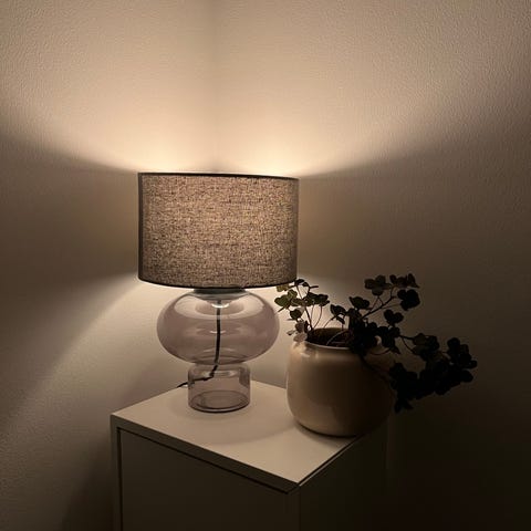 Lampen er super fed både med skærmen på eller med en stor glødepære i.
