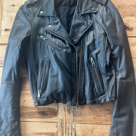 Læderjakke, str. 50, Superdry, Grøne, Læder, Næsten som ny, Til kvinde,Str. Medium ,Kalve læder,