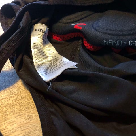 Cykeltøj, Bib tights, Craft korte cykelshorts med pude, bib tights. Str. XXL. Brugt 2 gange. Mørkeblå med lyseblåt Ørsted logo på det ene lår og bag. Kan sendes hvis modtager betaler fragt