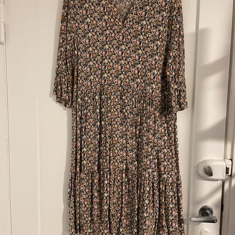 Anden kjole, Saint Tropez, str. M, Multi, Polyester, God men brugt, Saint Tropez kjole model’DeaSZ Desert’ Yderkjole i pink/koral/gul/sandfarvet mønster. Underkjole sandfarvet. Har bindebånd i taljen, og kan bruges både åben som kimono og lukket. Str M (model str s)