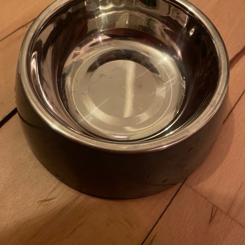 Foderskål, Sort farvet kattemad skål, plastik med skridsikre dutter, MaxiZoo, 14x12x3,5 cm, fin stand, vejer 42 gram.