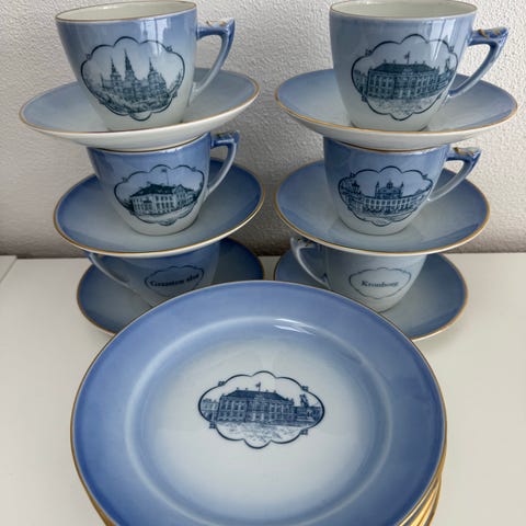 Porcelæn, Kaffestel , Slotsstellet, B&G, Slotsstellet fra B&G, 11 kopper og underkopper med forskellige slotsmotiver sælges samlet, sendes ikke
