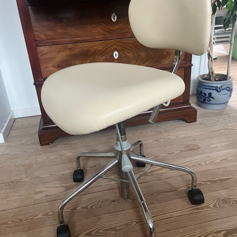 Kontorstol, Vintage kontorstol med armlæn. Læder / kunstlæder. Nogle brugsspor.
